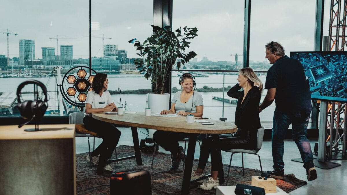 De studio is volledig modulair: van een strak sta-desk format tot een talkshowsetting met meerdere sprekers. De ruimte is te branden in jouw huisstijl en wordt ondersteund door een ervaren team van regisseur, technici en moderatoren.